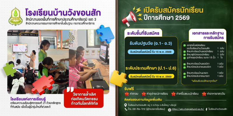 ยินดีต้อนรับเข้าสู่เว็บไซต์ โรงเรียนบ้านวังขอนสักค่ะ...